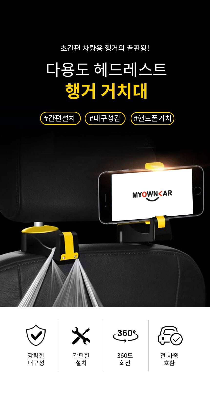 삼박자를 고루 갖춘 차량용 “헤드레스트 행거 거치대”와 함께 차량 내 굴러다니는 가방, 옷 등의 소지품을 걸어서 보관해보세요!