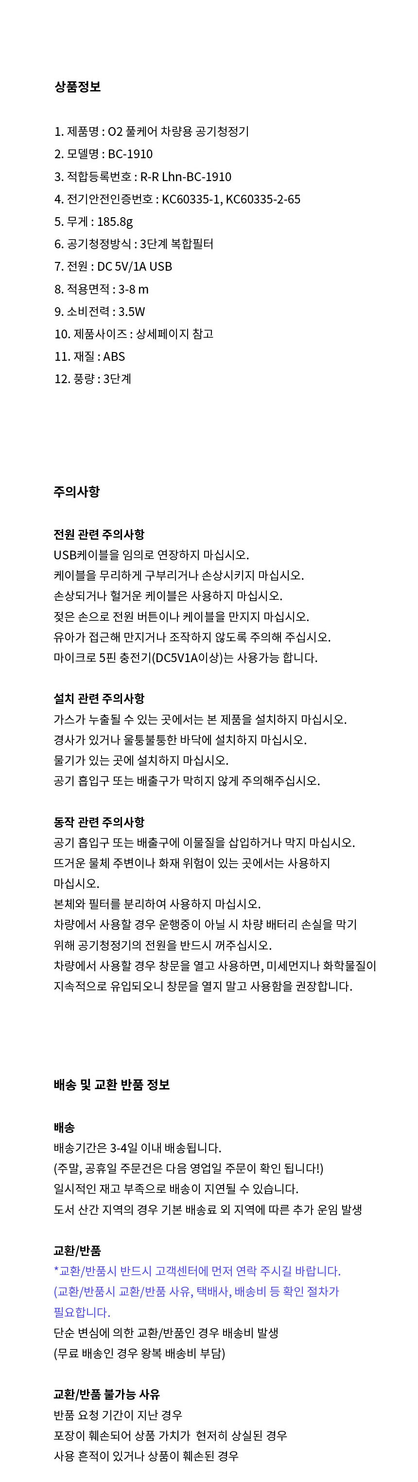 O2풀케어 차량용 공기청정기